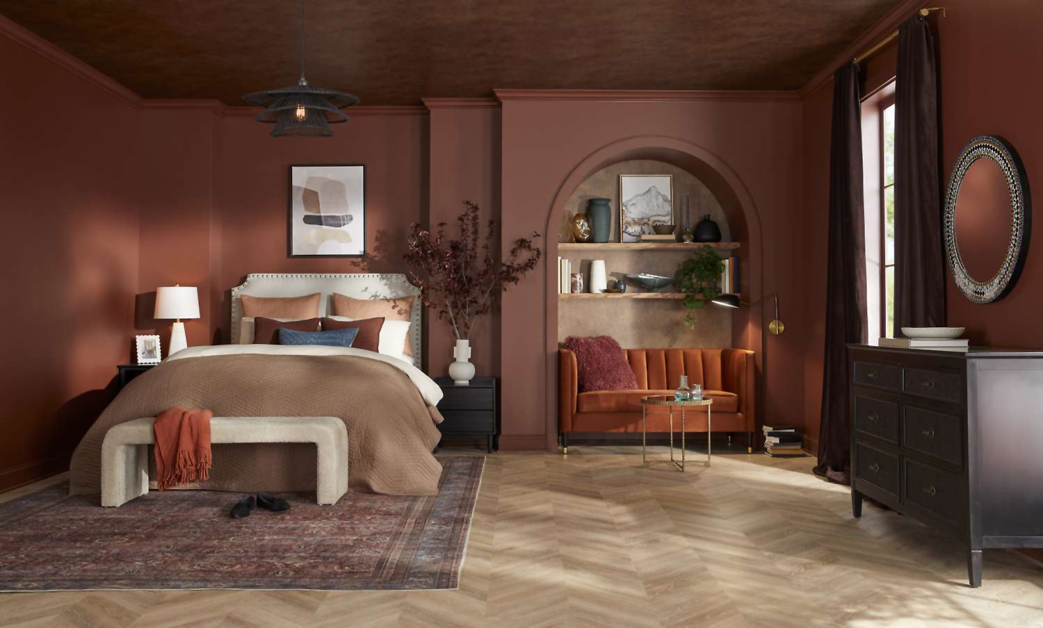 Behr’s entry into 2026 list is Hidden Gem. A moody, blue-green that embraces deep, emotional color, turning any space into a ‘wow’ moment. There’s such presence with a jewel tone and this one easily makes a statement. It’s a saturated, heady shade with an ability to be the star, it doesn’t need other colors to make it sing. Hidden Gem does this on its own. Ready to dress up a room with a flourish, here’s a tone that’s ready to take a bow.
