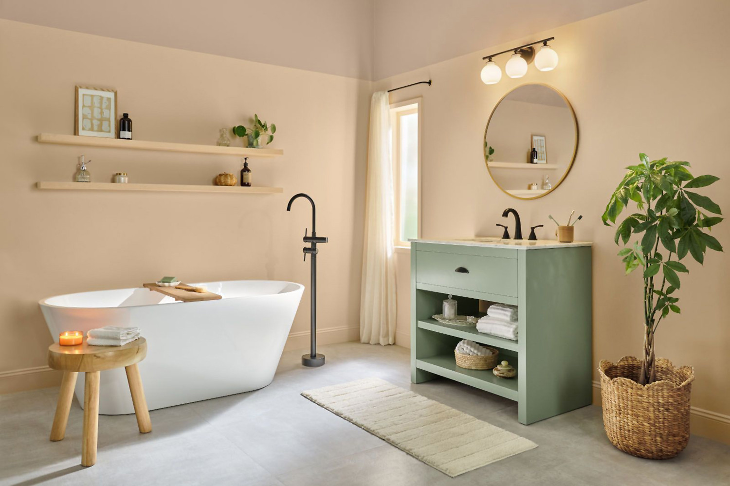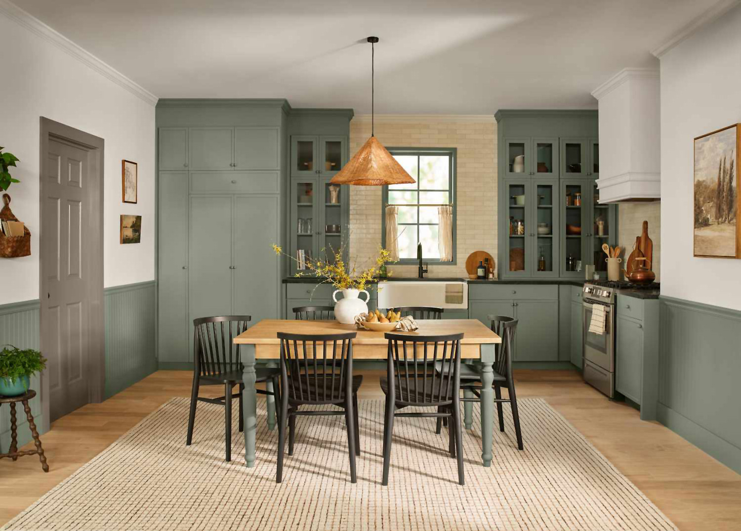 Valspar is counting on the restorative powers of color. Selecting Warm Eucalyptus for its 2026 Color of the Year, this shade is the epitome of a relaxing hue. Welcoming and perfectly content to remain as a backdrop for bolder complements, this silky, subtle greenish hue with warm gray undertones is satisfying and never overpowering. Wake up to this easy-going color from the kitchen to the bedroom.