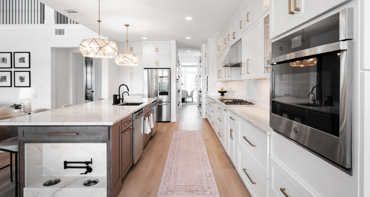 Cabinet IQ: It’s holding strong but evolving. Instead of traditional white uppers and darker lowers, we’re seeing mixed materials like wood and painted finishes together, different tones of the same color family, contrasting island statements, and interior cabinet finishes that differ from exteriors. The goal now is layered, curated, and intentional.