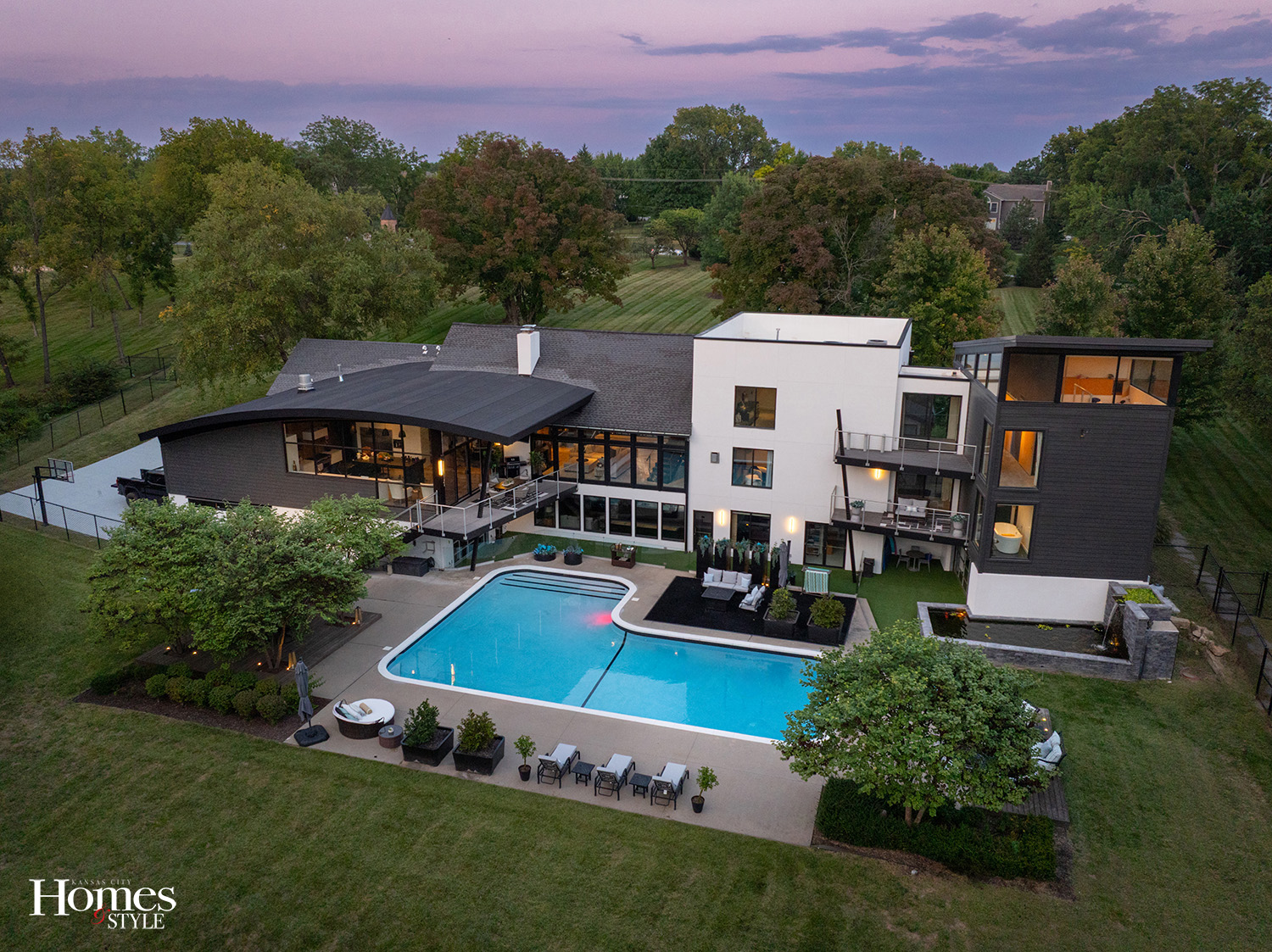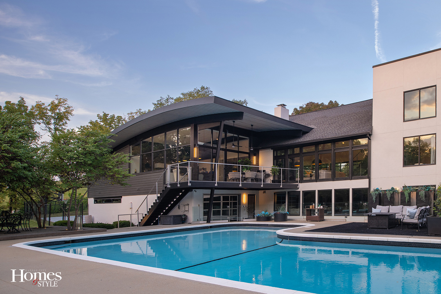 A Leawood estate combines bold architectural design with modern luxury on nearly eight acres of privacy.
