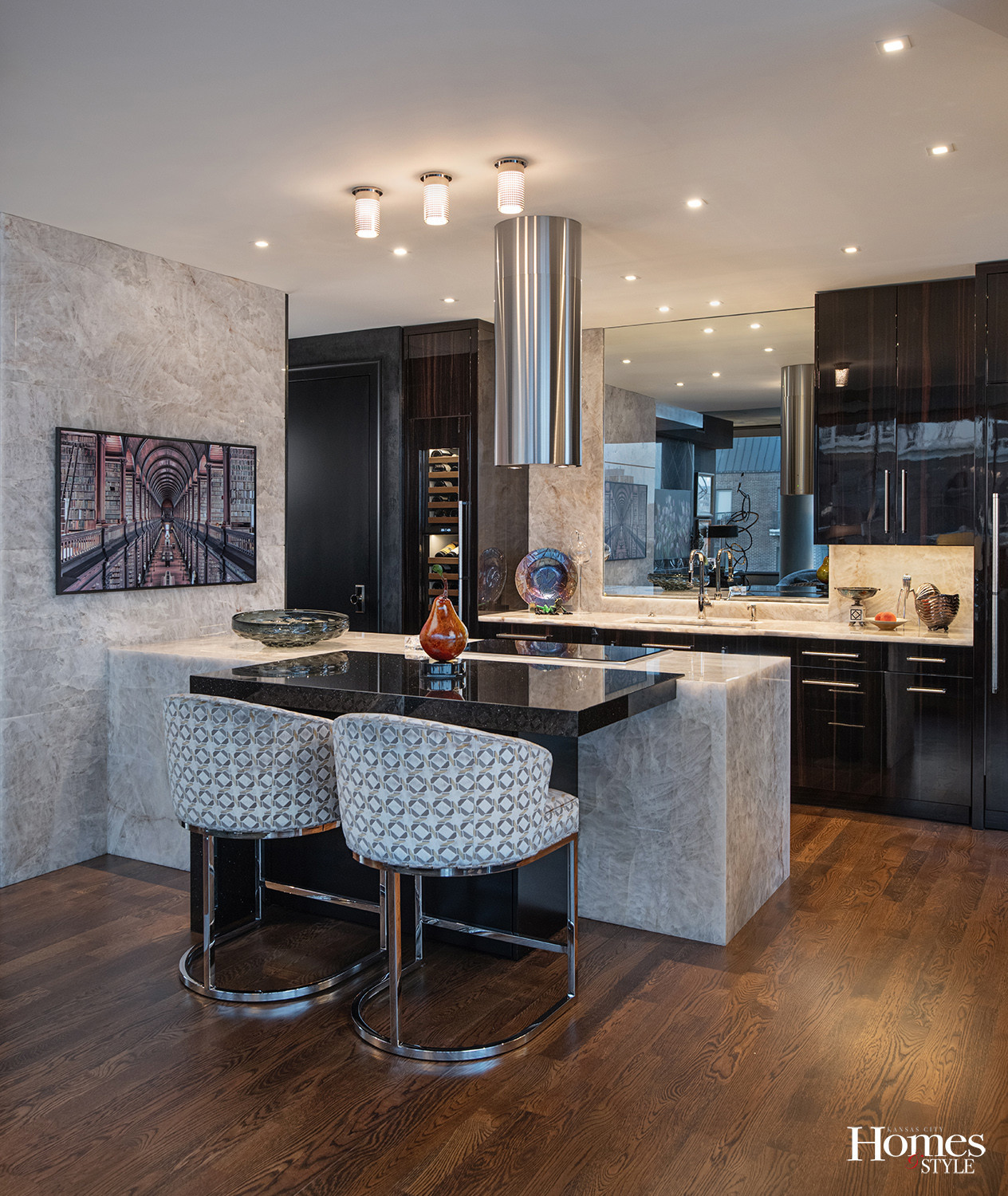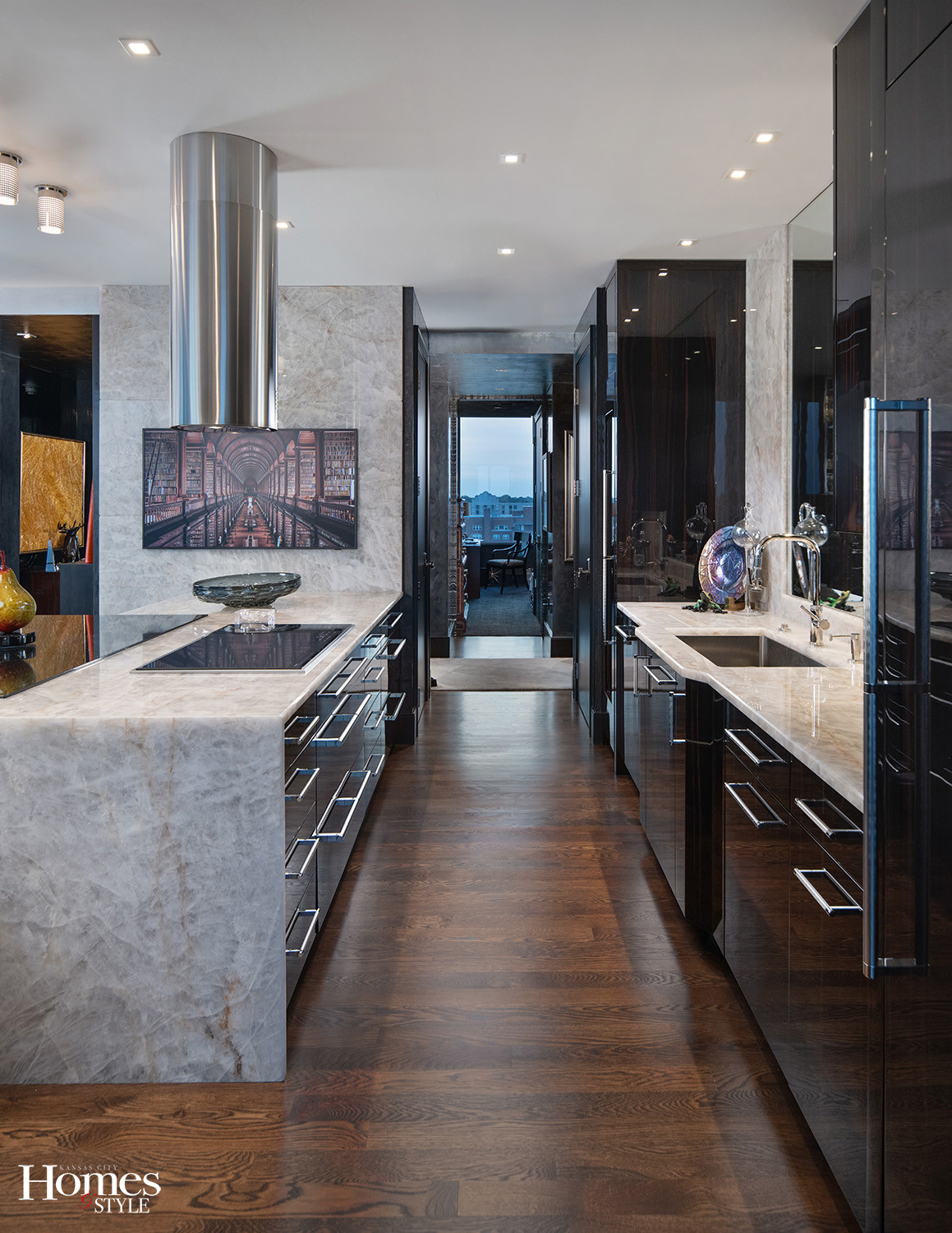 When Kansas City designer Kurt Knapstein bought a Plaza condo to be near his newly remodeled boutique, he saw past the standard-issue kitchen to what it could become. Working in collaboration with designers Randy Sisk & Genevieve Hamel, Knapstein brought a clear vision to the project. The transformation took the space from builder basic to dramatic and sophisticated, proof that you can have both style and function in a plaza high-rise.