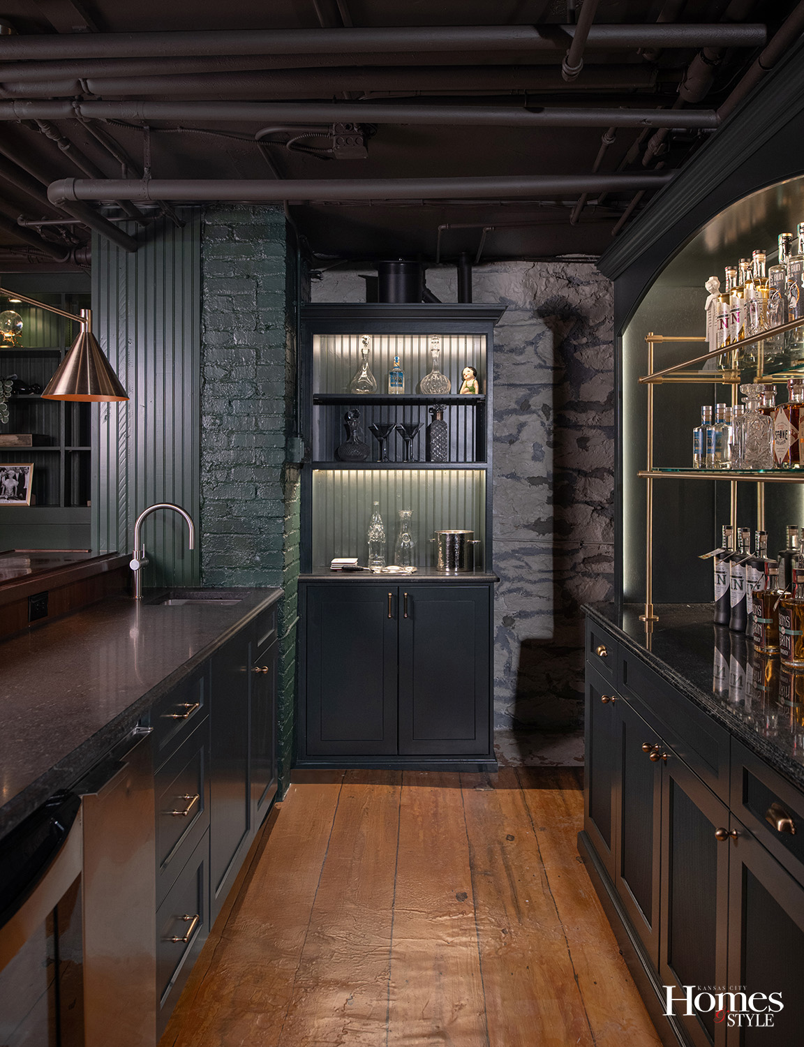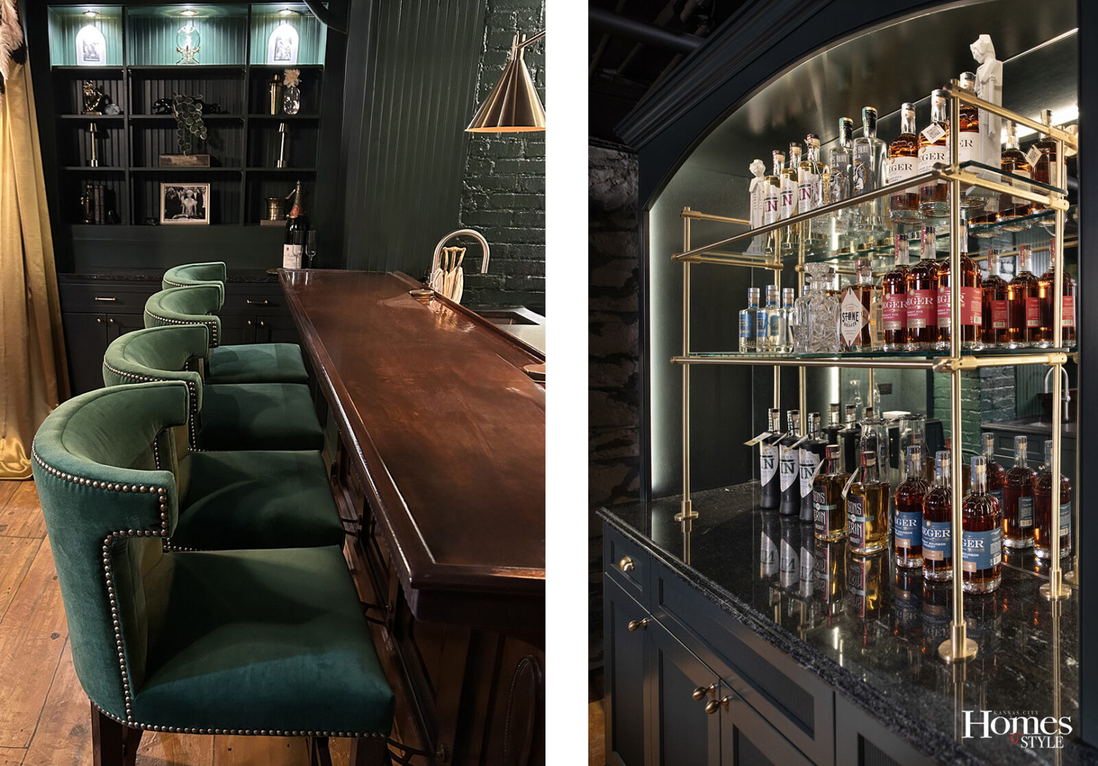 With each step down the staircase of the 2025 Symphony Designers’ Showhouse, the present fades. The lights grow dimmer, the colors richer, and the air takes on a secretive hush. Designer Meg Hilburn of Circa Interior Design envisioned the remodel of this lower level as a journey into Kansas City’s Prohibition past. “Kansas City has such a rich history,” she says. “Making the speakeasy feel true to that era was our way of honoring it.”