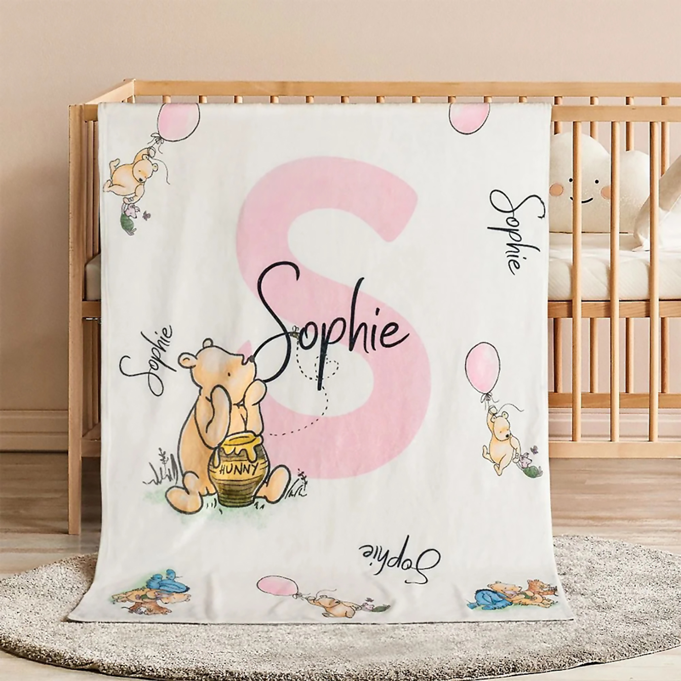 This classic design in pink, blue or green, has exceptional softness and warmth. Customize with baby’s name and initial.