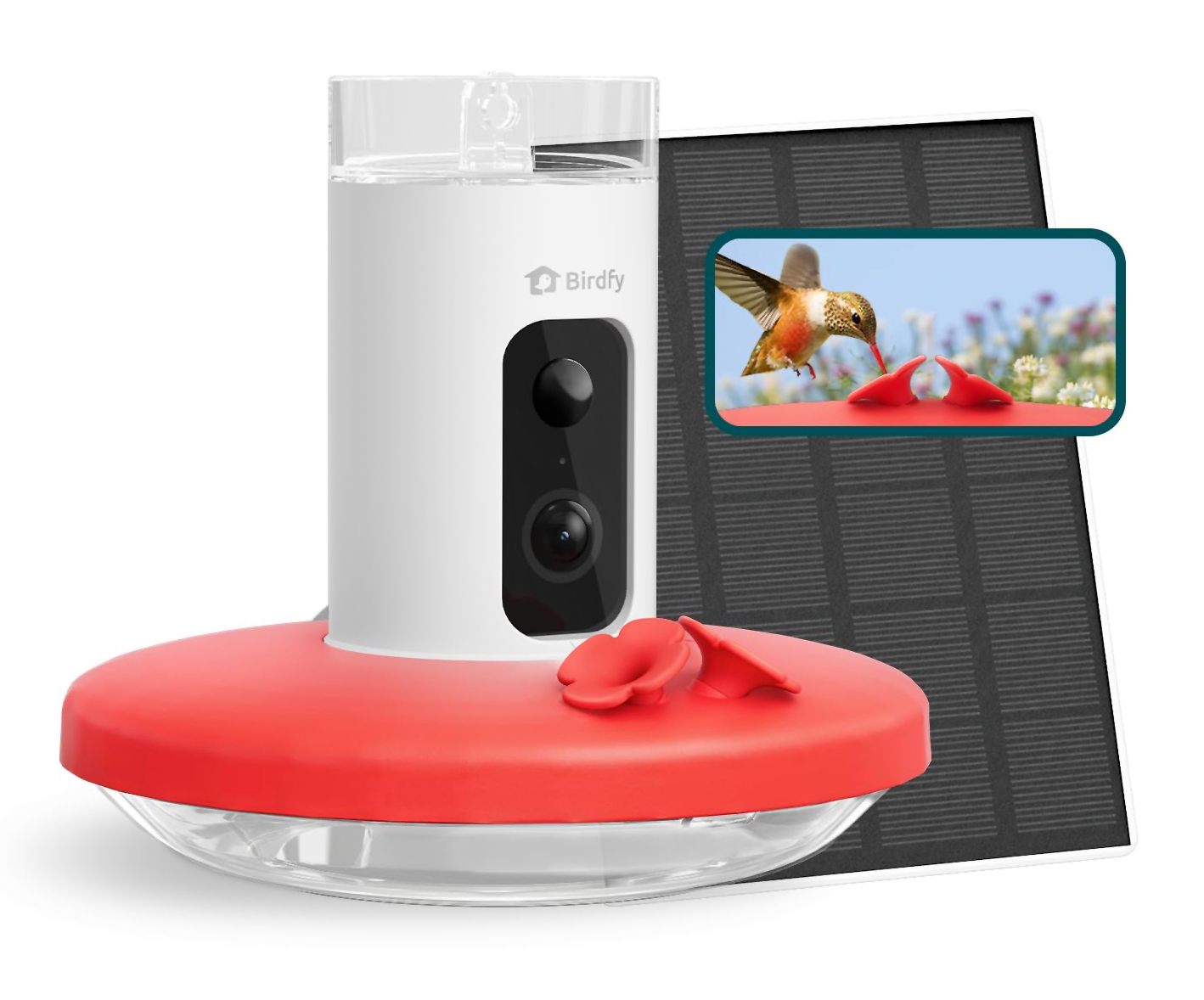 Hummingbird feeder with camera captures every shimmer of their feathers. Motion Alert. Optional solar panel.