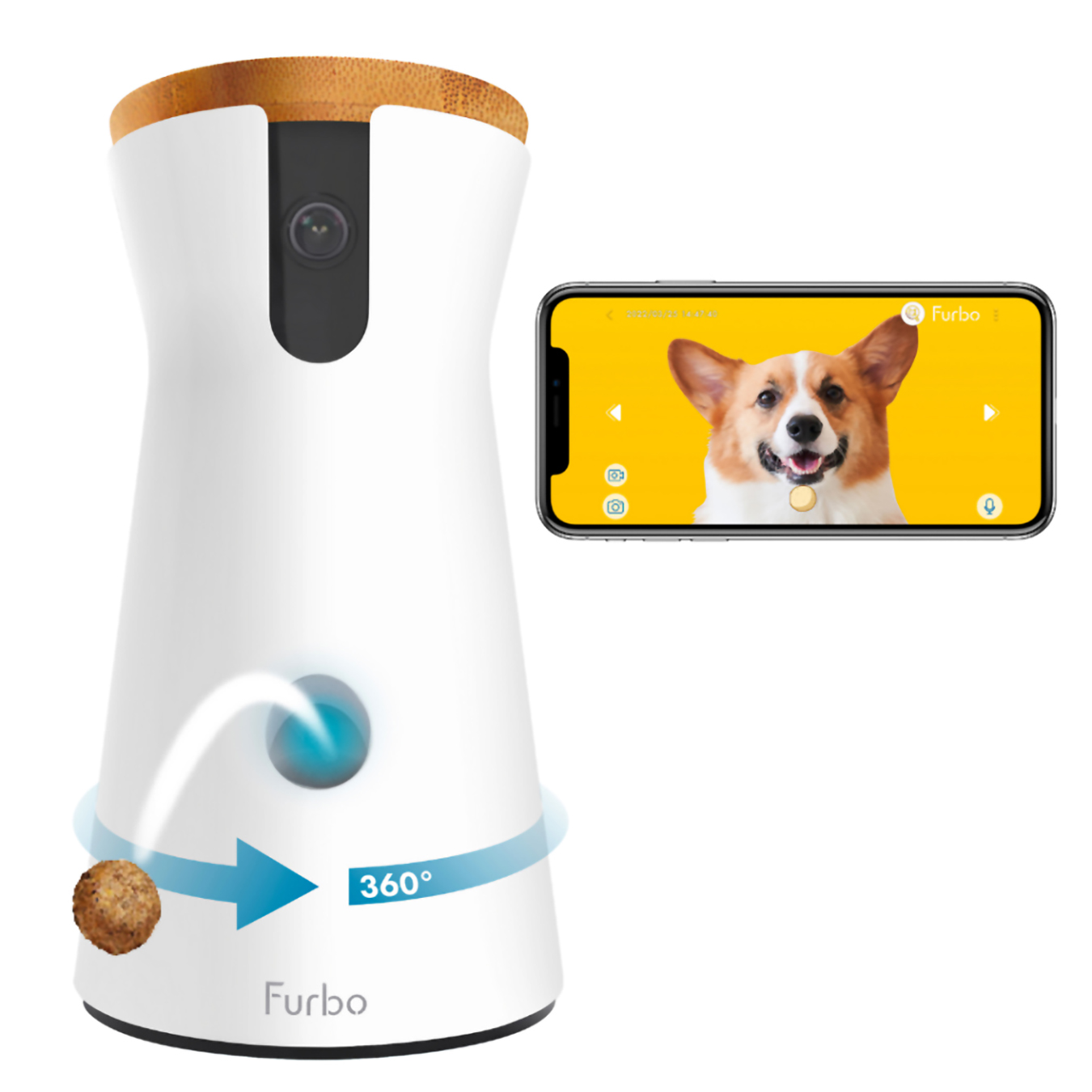 Rotating 360° View with no more blind spots, automatically rotates and tracks your dog, talk to your pup, toss them treats.