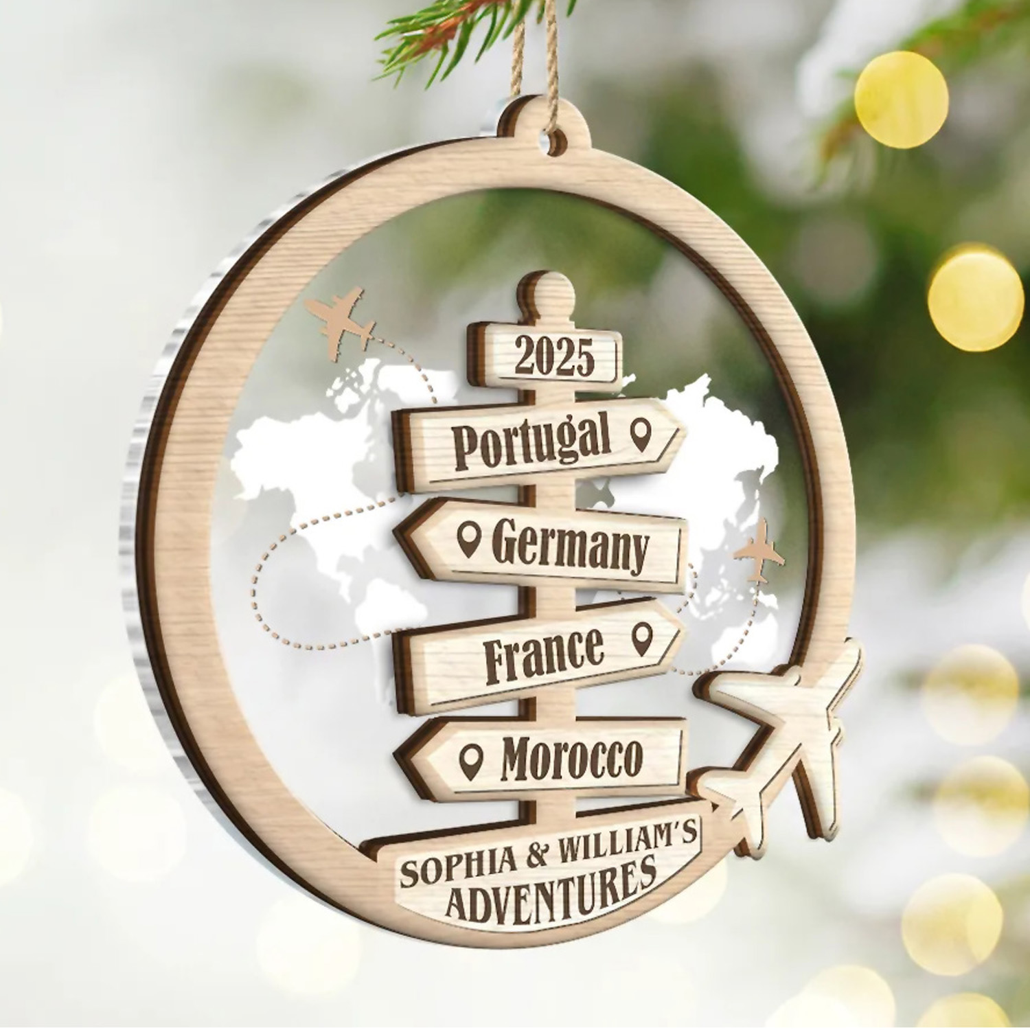 Personalized 2-layered mix ornament captures your journeys of the past year.