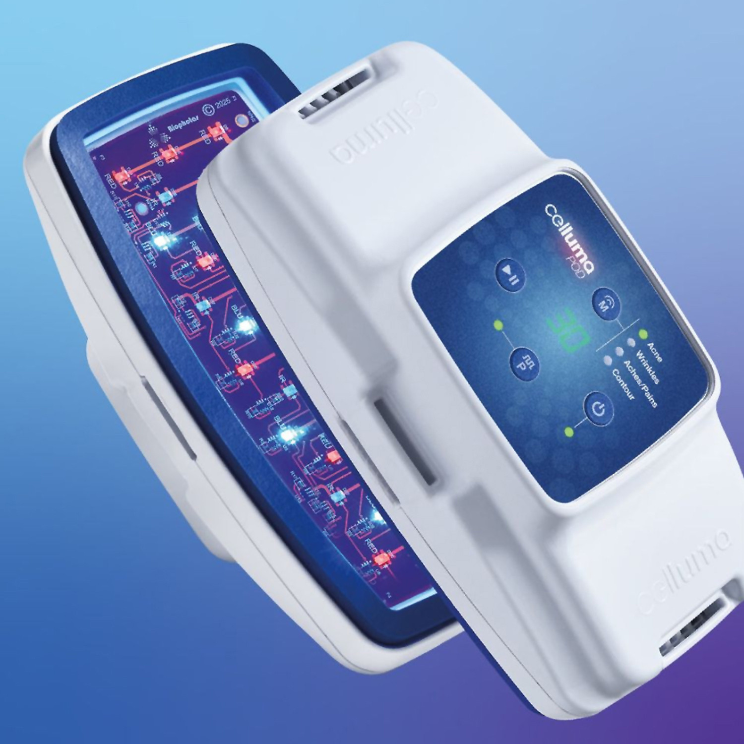 The All-New Celluma POD Series 2 is a compact, handheld LED light therapy device built for targeted spot treatments. It offers four FDA-cleared treatment modes — Acne, Aging, Pain, and Body Contouring — making it the only handheld device of its kind cleared for targeted over-the-counter body contouring.