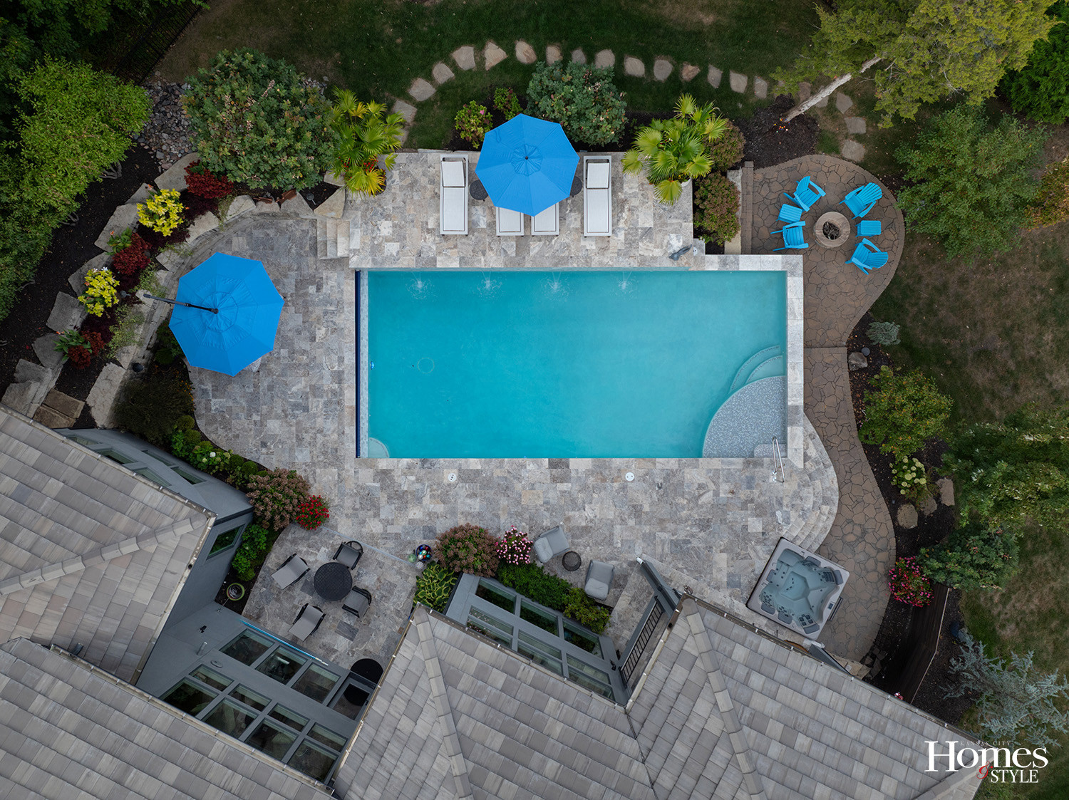 “The goal was always to keep the pool as a focal point to the space,” Frits says. “The seasonal color invites you and surrounds you so that you want to stay, relax, and enjoy it as long as you can.”