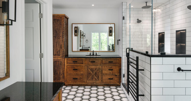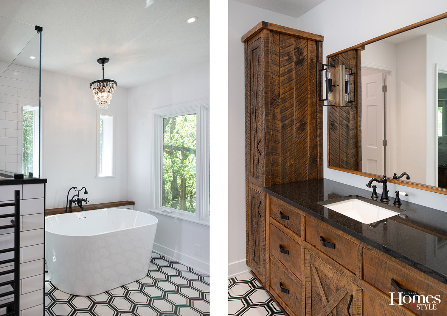 “We really like the classic black and white look with a little bit of barnwood,” says Karen. “We wanted clean lines and an overall look that can stand the test of time.”